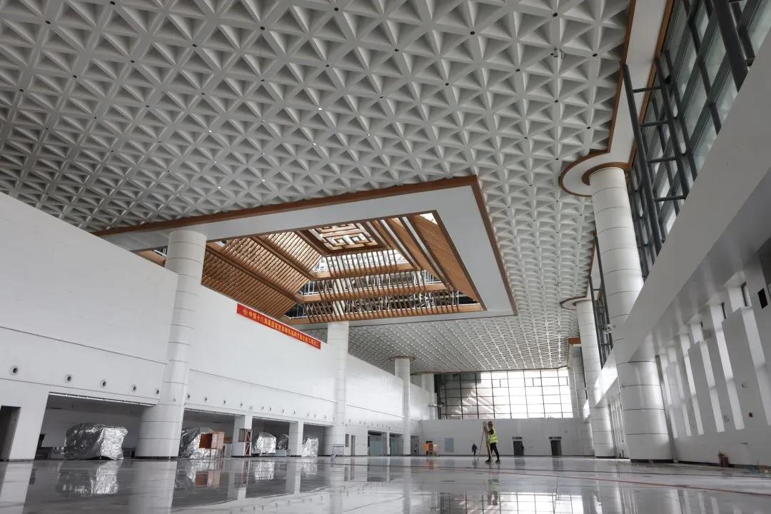 邯鄲機場第三期改擴建工程總投資7.19億元,建筑面積近2萬平米的航站樓一座、新增7個機位、配置5部登機廊橋,跑道加蓋15厘米瀝青混凝土,增加跑道中線燈,新建1條局部平行滑行道、1條垂直聯絡道以及機坪、機庫、增設5G通訊設施等。新航站樓采用中國傳統古建筑造型與現代設計理念完美融合的“飛檐華蓋”新結構,既彰顯古都氣質,又不失現代美感,以回字形紋作為裝飾,顯得恢宏大氣,彰顯了邯鄲的古城氣質、現代風貌。